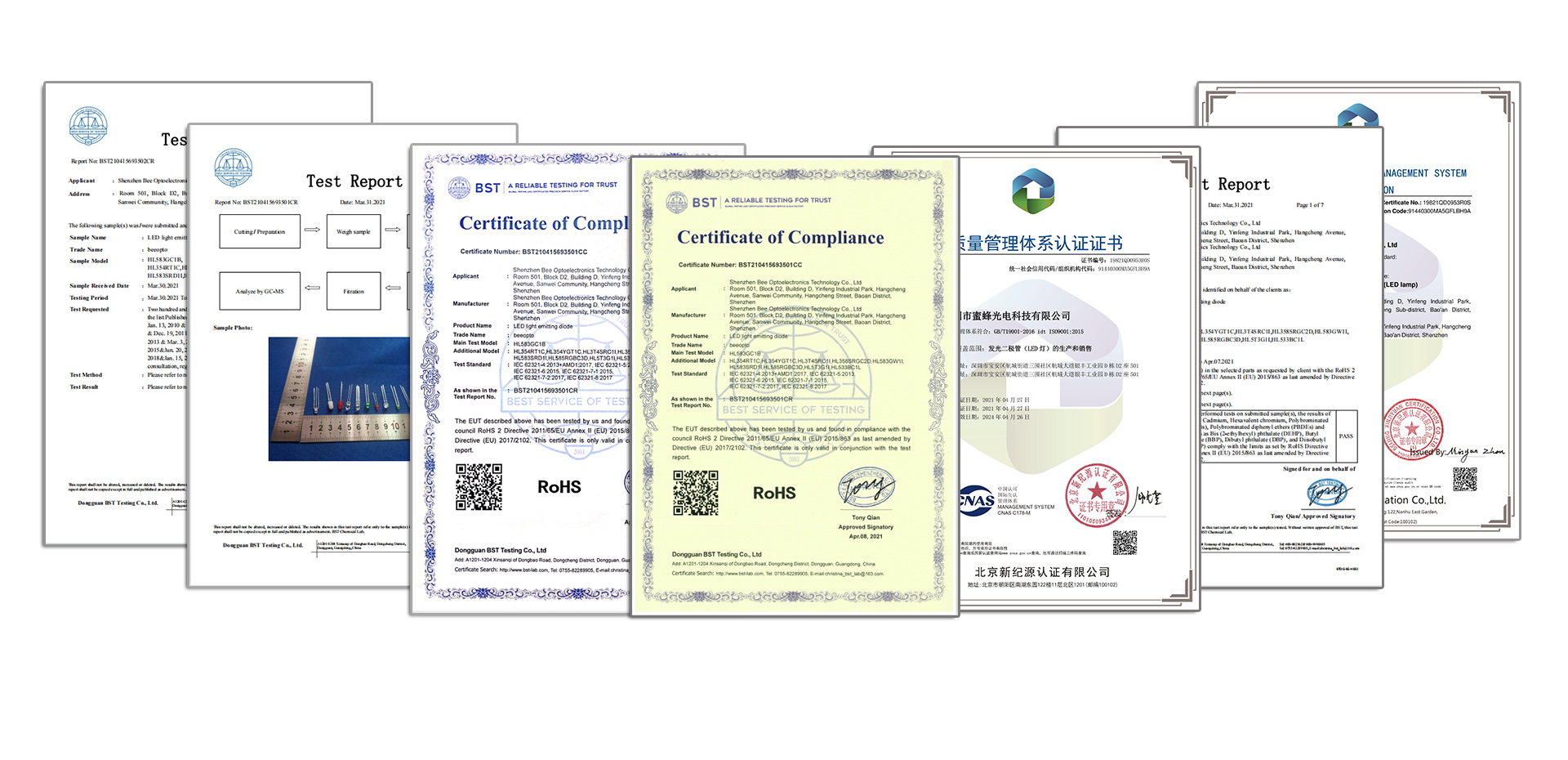 蜜蜂光电以产品品质和服务质量为生命,拥有完善的品质管控手段和管理系统,并通过ISO9001、欧盟ROHS、REACH等相关认证,成为行业客户放心的 LED 品牌之一。